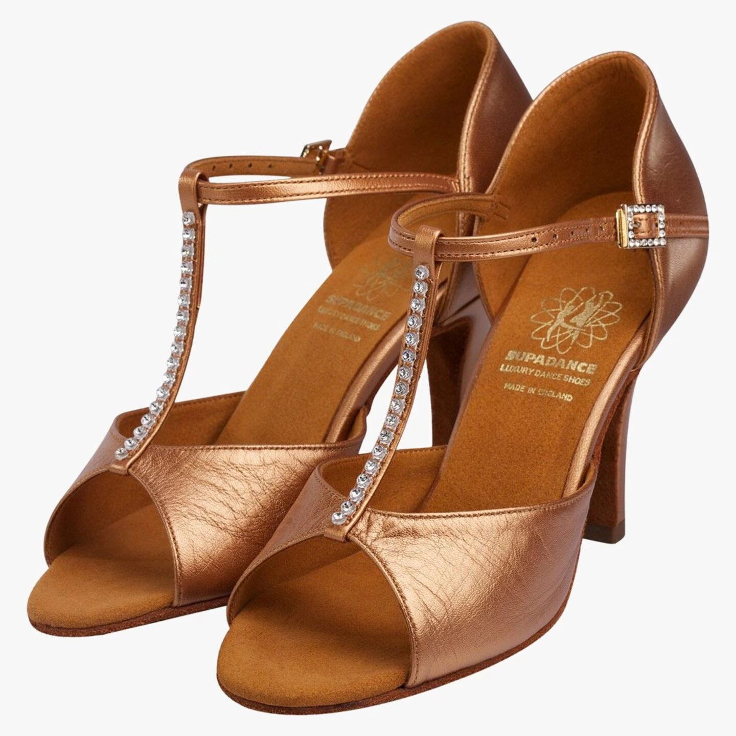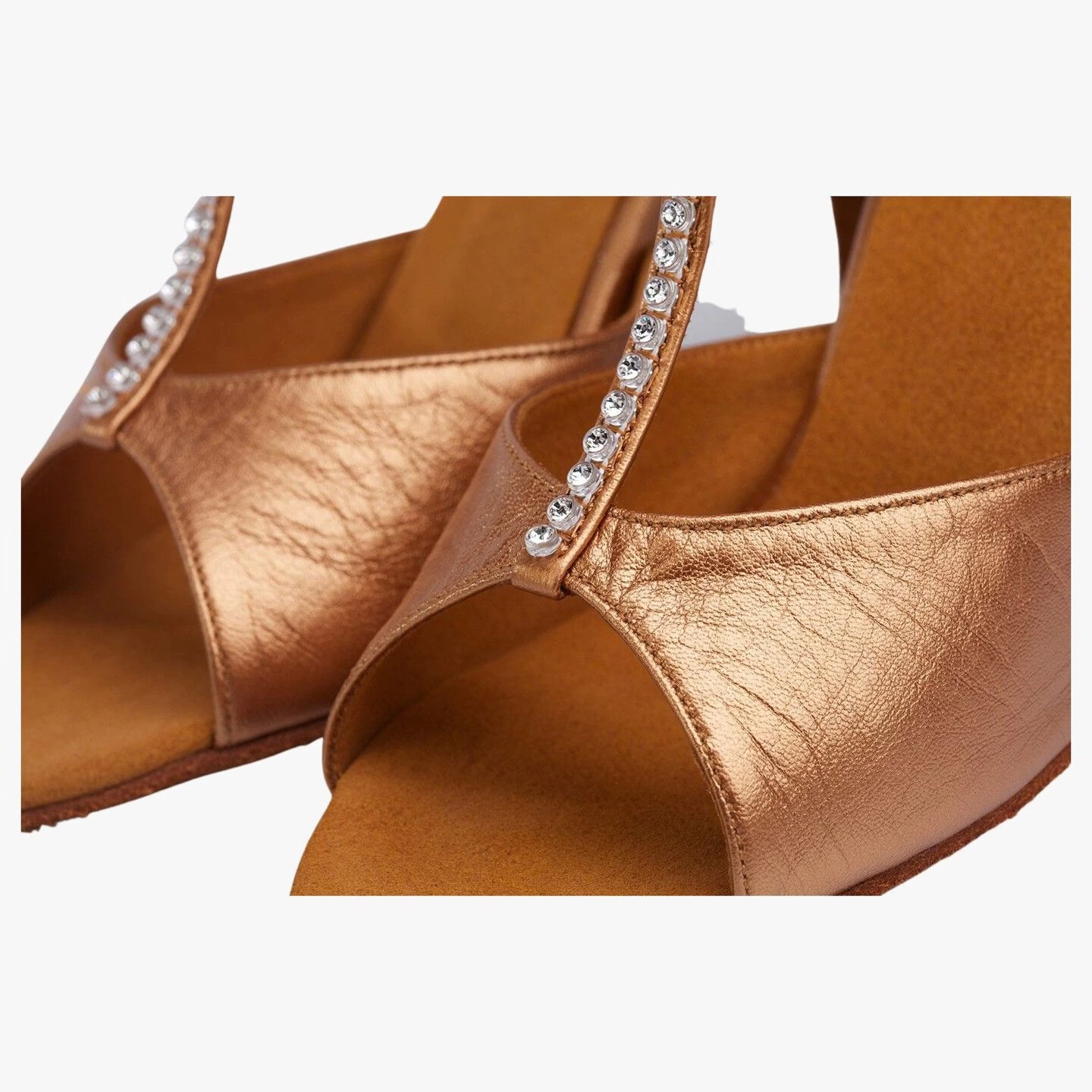 Ladies Latin Sandal Dark Tan Sateen Leather.