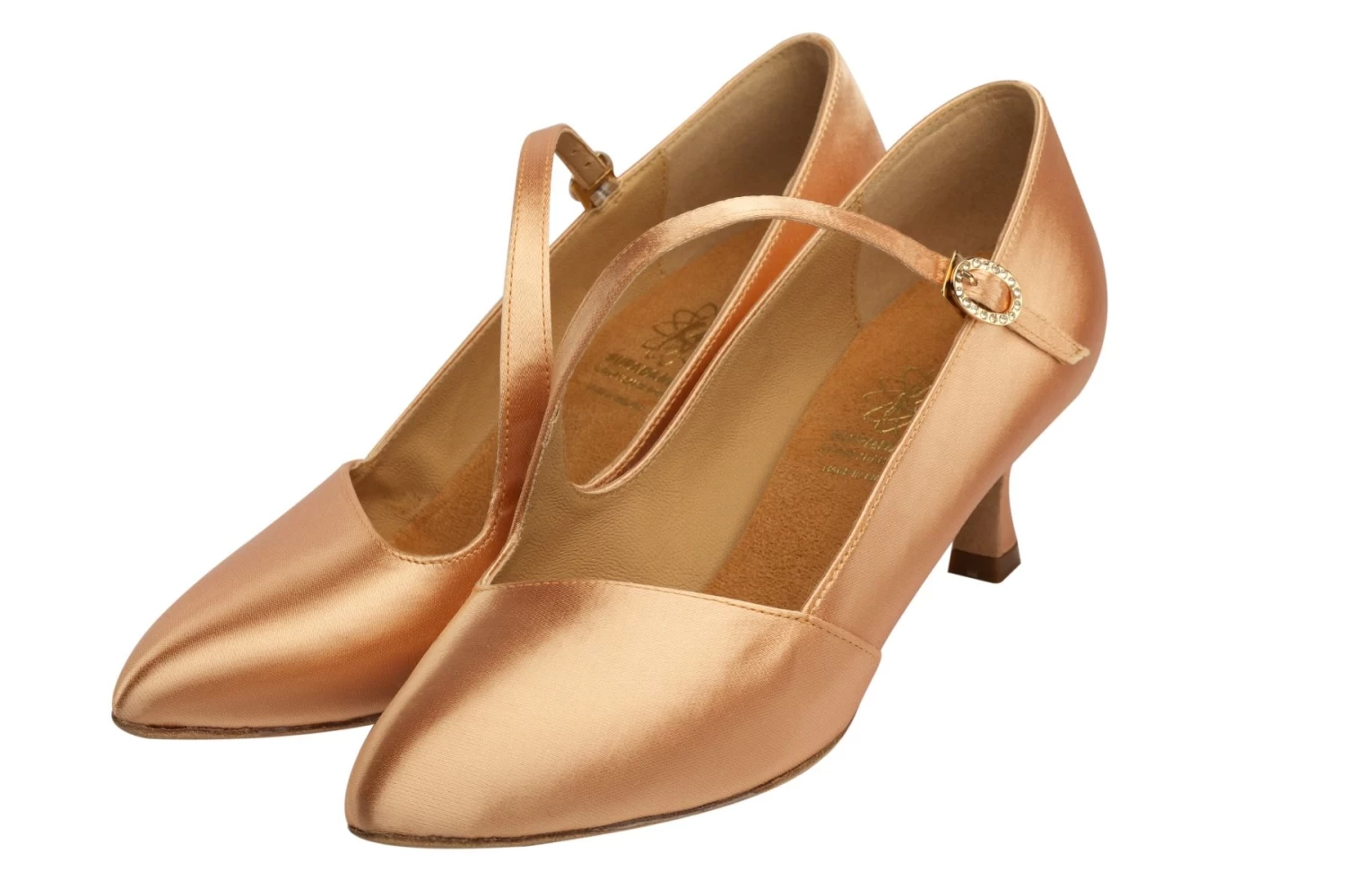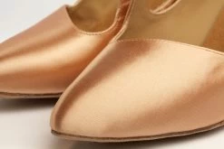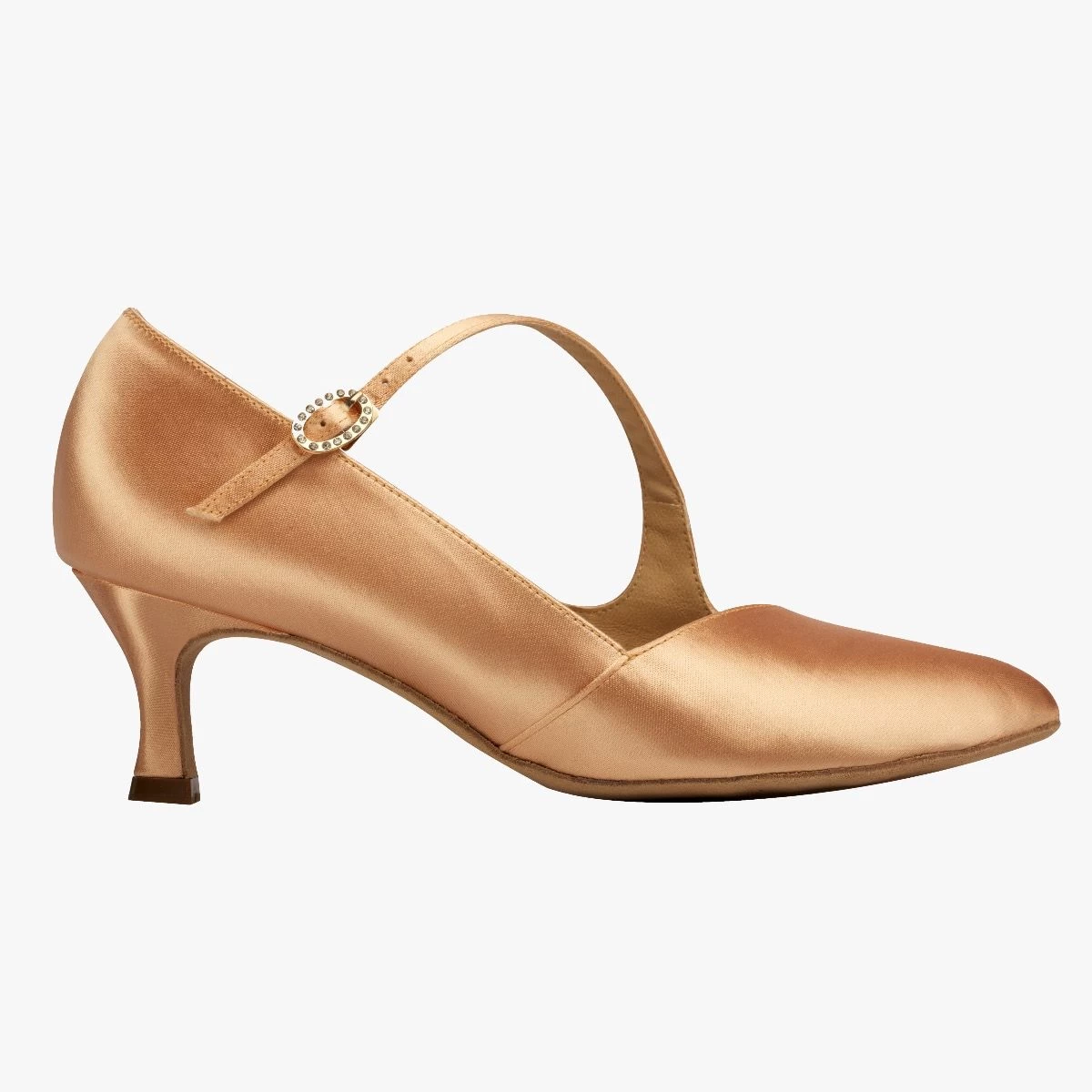 Pointed toe court shoe with diagonal strap.