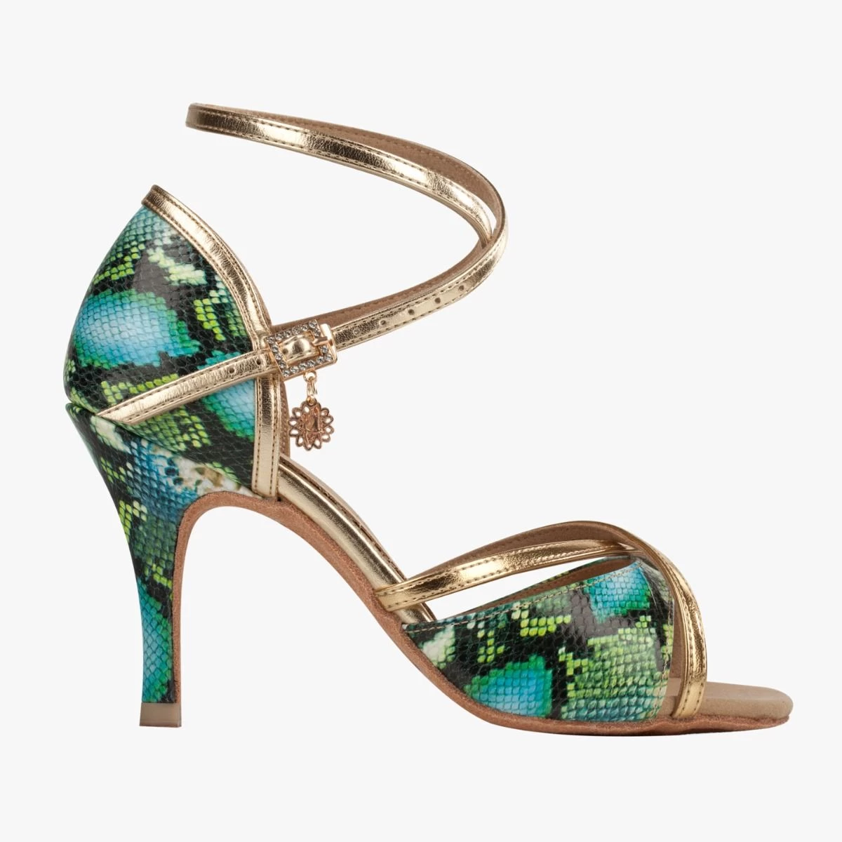 Step up your Latin dance game with our Style 1073 Blue Snake shoes.