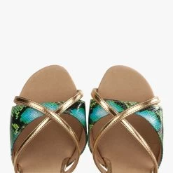 Blue Snake, Latin Sandals with Gold Straps.