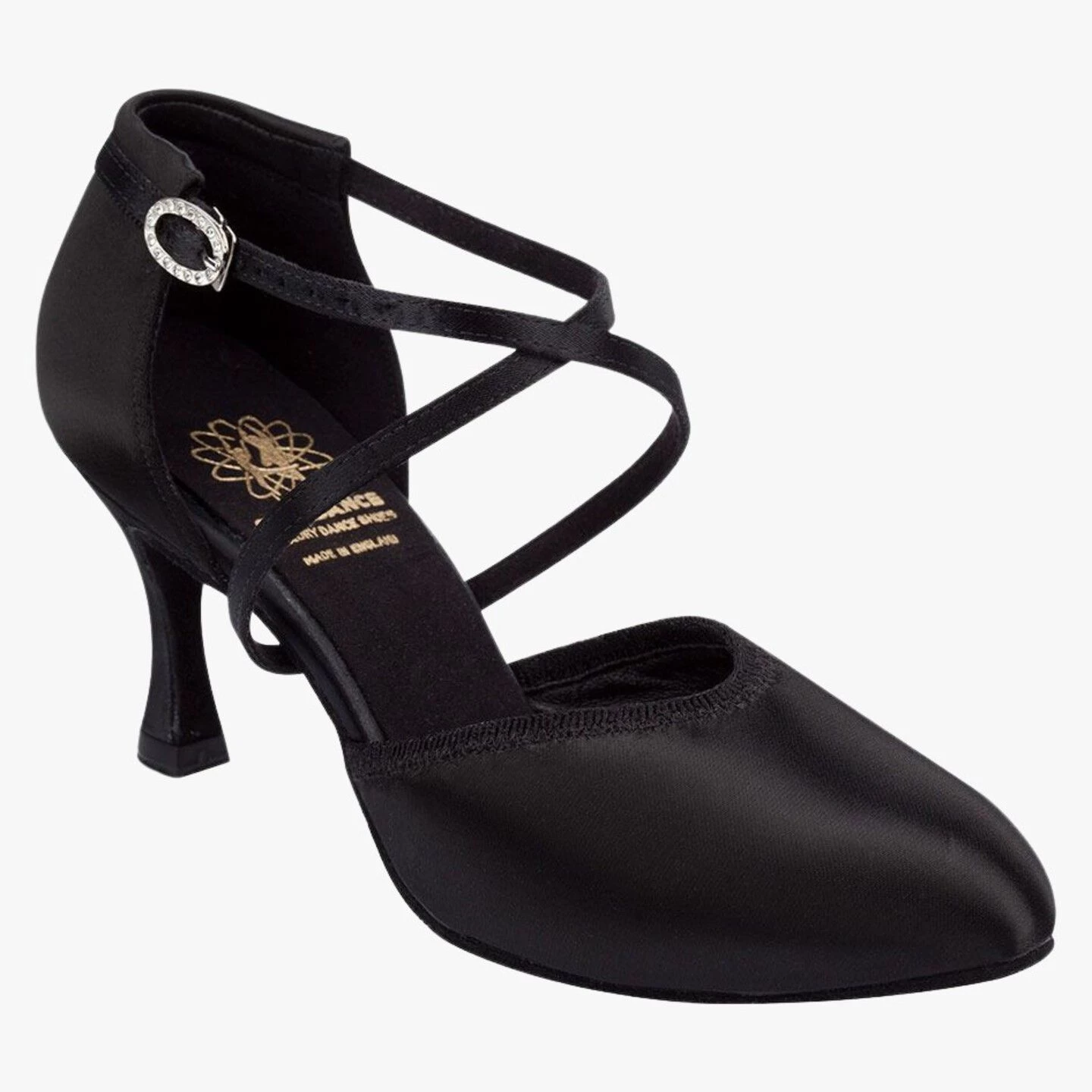 Made-to-Order in Black Satin with choice of 2″, 2½” and 3″ Flare heels.