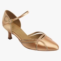 Flesh Satin, Closed Toe Sandal with Premium Crystal Diamantes.