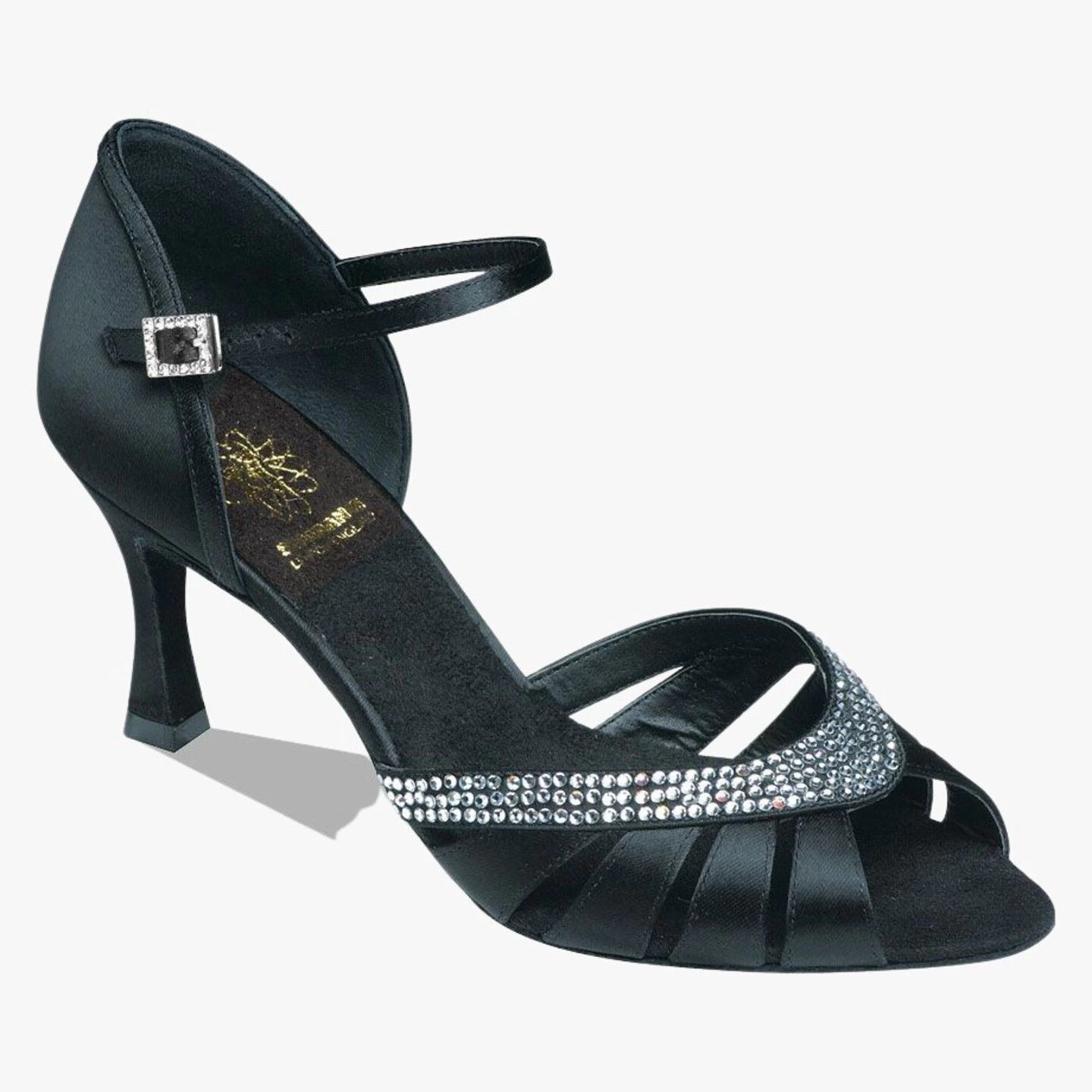 Black Satin sandal with Premium Crystal Diamantes.