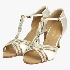 Latin Sandal with Crossover T-Bar Design, Embellished with Premium Diamante Crystals.