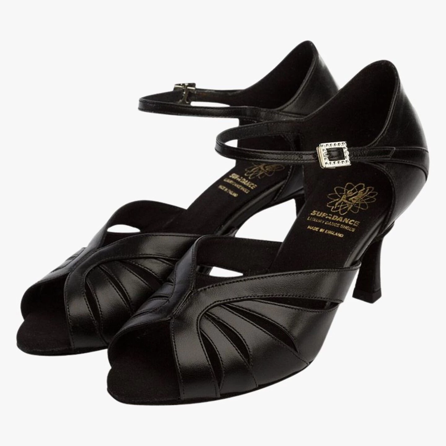 Diamante buckle and hook fastening in Black Leather.