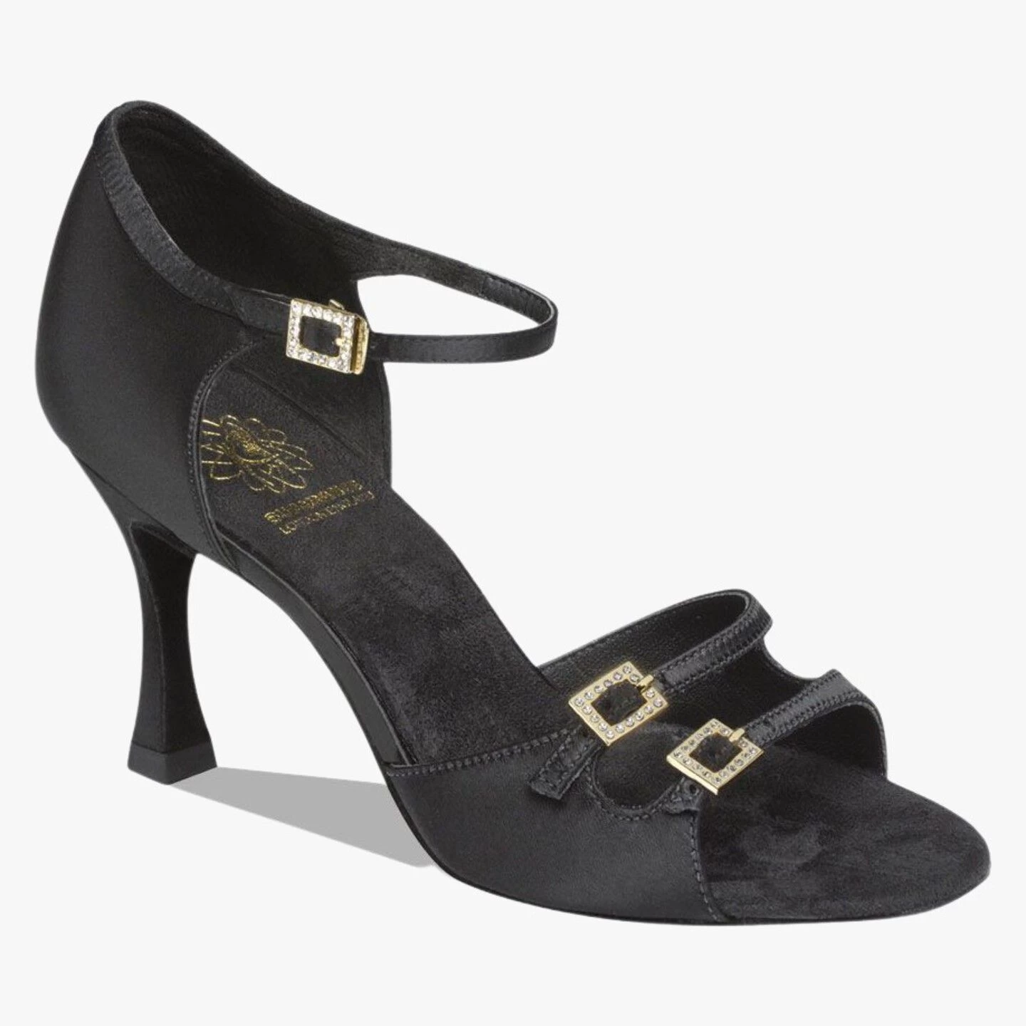 Shaped back with fully adjustable two strap vamp.