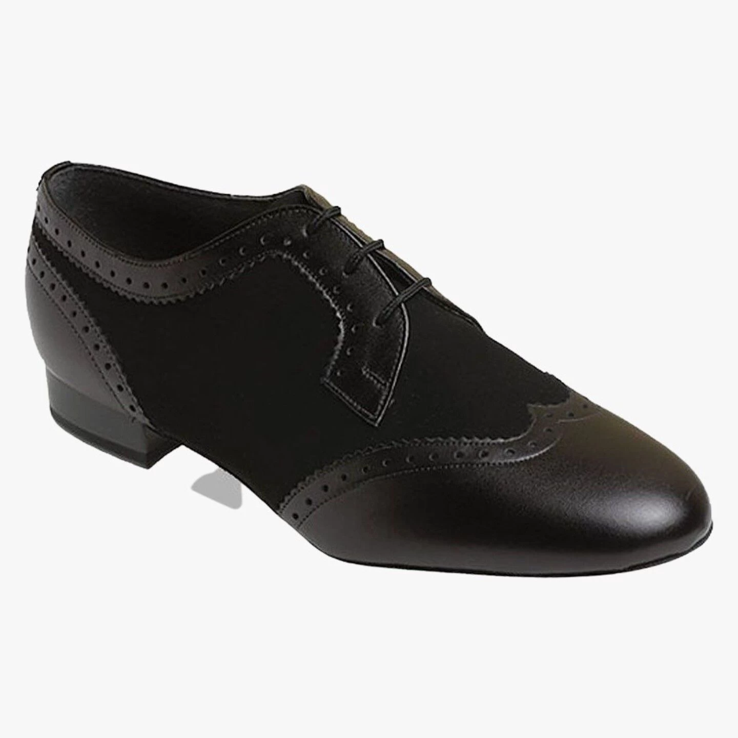 Men shoes with low cushioned heel in choice of Black / White Leather or Black Leather / Nubuck.