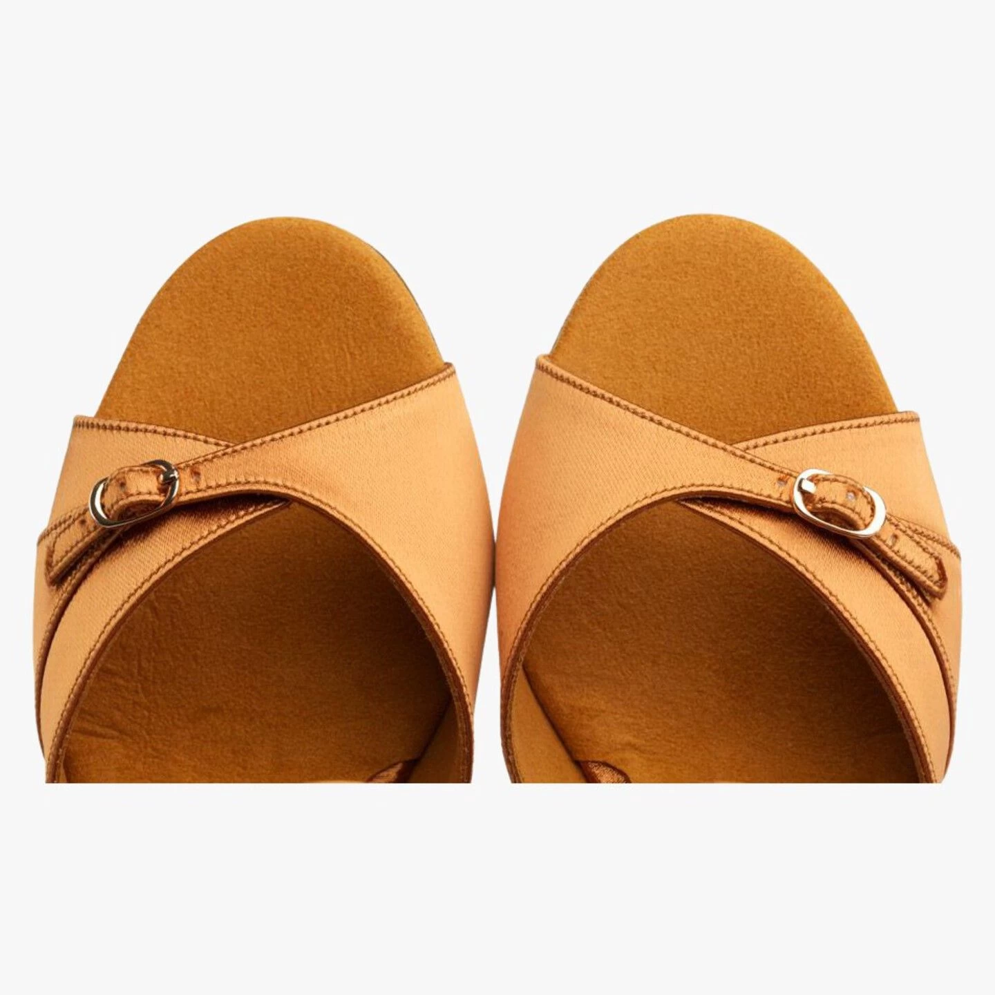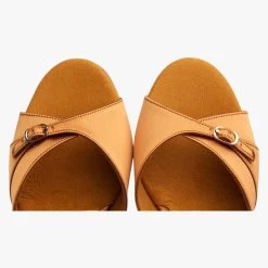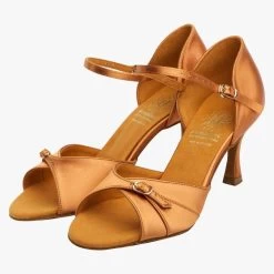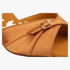 Entry Level Latin Sandal in Dark Tan Satin.